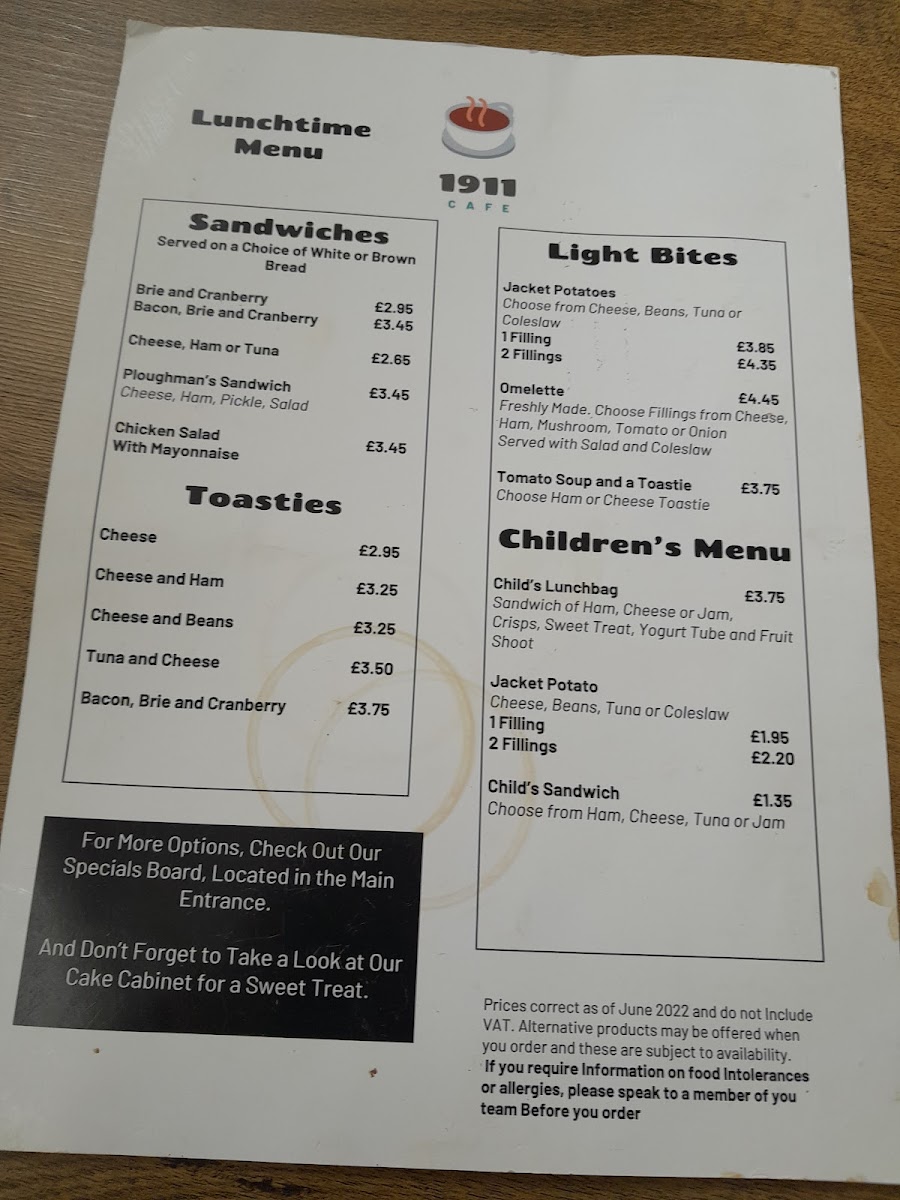 Welcome to The 1911 Cafe LTD, a cherished gem located in the heart of Essington, Wolverhampton. This delightful cafe exudes warmth, making it a perfect gathering spot for families and friends. The menu is an enticing blend of comfort food and cafe classics, featuring a variety of toasties such as the savory Bacon, Brie And Cranberry or the classic Cheese And Ham, all priced reasonably to ensure you leave satisfied. For younger patrons, the children's menu offers delightful options like Jacket Potatoes and Child’s Sandwiches, perfect for little appetites.